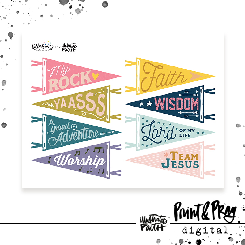 Print out these super sweet pages of ephemera by Kelly Bangs Creative to help illustrate your faith journey! Her fresh, fun, style will wake up your heart & make you giddy to crack into your Bible & get busy creating!