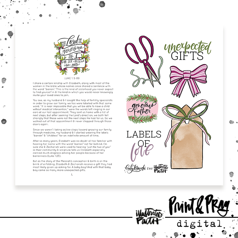- (2) pages of devotional content & cut-apart ephemera by Emily Karwoski