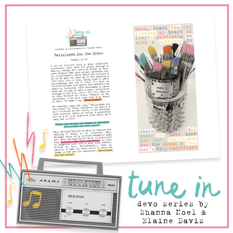 This new series written & illustrated by Shanna Noel & Elaine Davis spins the radio dial to the worship channel! Shanna & Elaine are sharing their favorite worship songs in these devos & creating coordinating artwork to bring them into the margins! These once-a-month devotionals will alternate between Elaine & Shanna as well as focus on a new song each month! So crank up some tunes as they share their hearts!