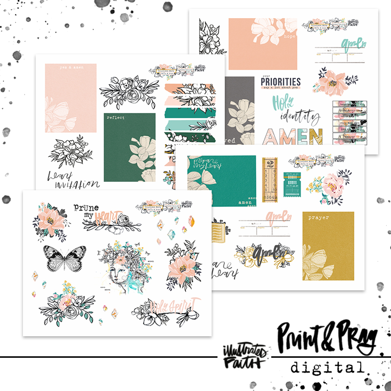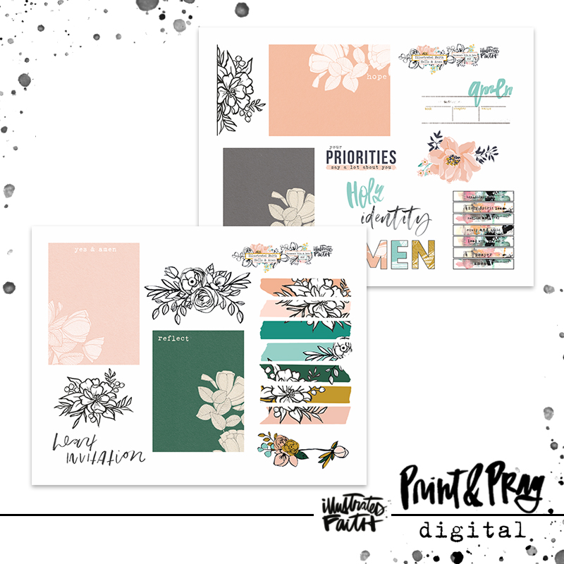 Bits & Bobs is a collection of pieces pulled from the Illustrated Faith catalog and curated into one collection! This collection includes lettering from Katy Fults, illustrations from Angie Poston, illustrations from Shanna Noel, beautifully pieces by Ali Brown, florals from Kim Stewart, and florals from Brenda Weaver!