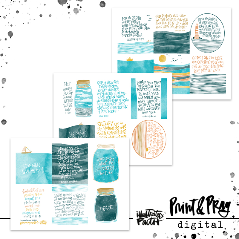 It’s no secret that Brianna loves the sea, most especially during the summer. The sea brings the grace of God with each wave that laps against the shore. It’s endless horizons offer perspective. And water is such a good reminder of our identity as “washed clean” in Christ. This set of encouraging cards and sea-inspired illustrations will be perfect in your journaling or scrapbooking projects as you reflect on your summer, or just process the upheaval in the world right now. Wishing you peace in the season ahead.