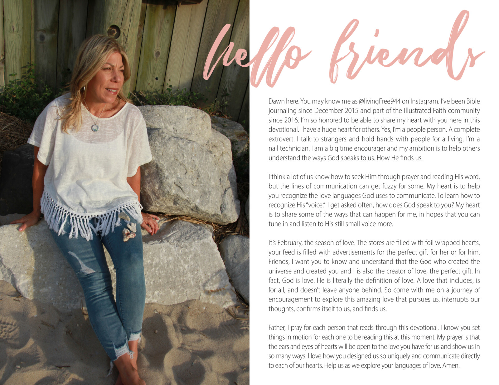 Hello friends, I think a lot of us know how to seek Him through prayer and reading His word, but the lines of communication can get fuzzy for some. My heart is to help you recognize the love languages God uses to communicate. To learn how to recognize His “voice”. I get asked often, how does God speak to you? My heart is to share some of the ways that can happen for me, in hopes that you can tune in and listen to His still small voice. It’s February, the season of love. The stores are filled with foil-wrapped hearts, your feed is filled with advertisements for the perfect gift for her or him. Friends, I want you to know and understand that God who created the universe and created you and me is also the creator of love, the perfect gift. In fact, God is love. He is literally the definition of love. A love that includes, is for all and doesn’t leave anyone behind. So come with me on a journey of encouragement to explore this amazing love that pursues us, interrupts our thoughts, confirms itself to us, and finds us.