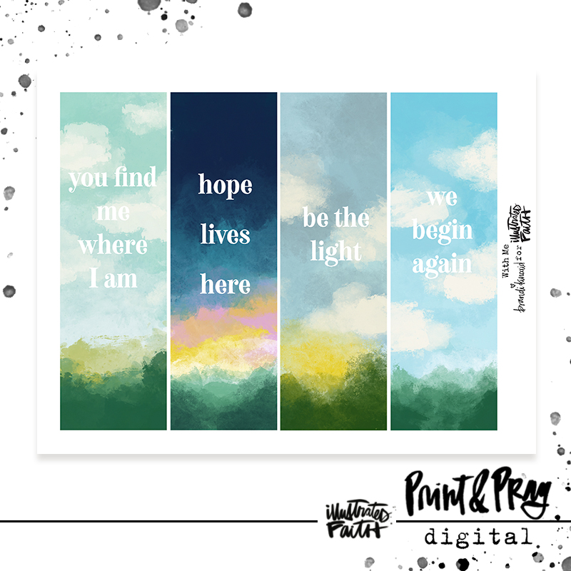 “Sometimes it’s the moments just before and just after that stick with me most, when I know the rainbow is on its way, and the trust that it will come, or come again, is enough to keep going. These bits of painted landscape are holding places for that kind of hope, and whether you use them as a book mark, or along the side of a page, may they be a reminder of how good it is to make space for what’s coming as much as for what’s gone before.