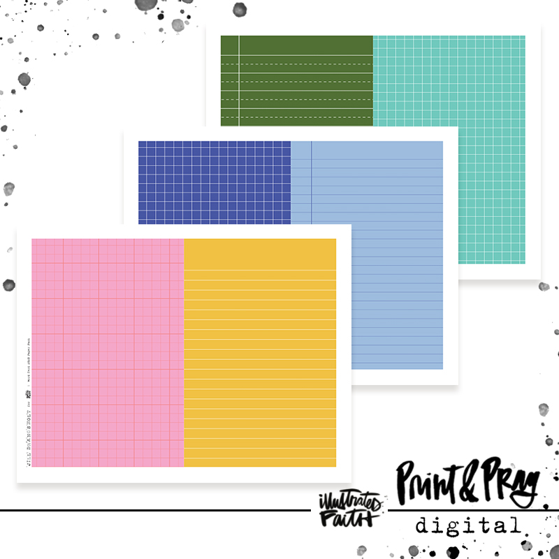 We are obsessed with a good grid around here so we are excited to offer these colorful school inspired papers for you to play with as you work through the 2020 Word Nerd kit as well as all of your other paper crafting and Bible journaling projects! These are the same papers that Jill designed for the backgrounds in the Word Nerd traveler’s notebook so they will coordinate perfectly with that kit. You can print these papers to layer, create tip-ins, journal pages, scripture cards, & more!