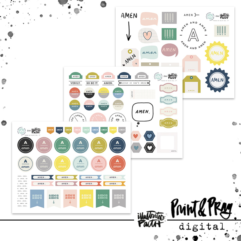 Words of Faith vol. 1 is designed to add the perfect bit of detail to your pages and projects. The “Amen” edition can add just the right splash of “so be it” and “verily” and “YES” to your heartsongs and art. They are designed to coordinate seamlessly with a product line.