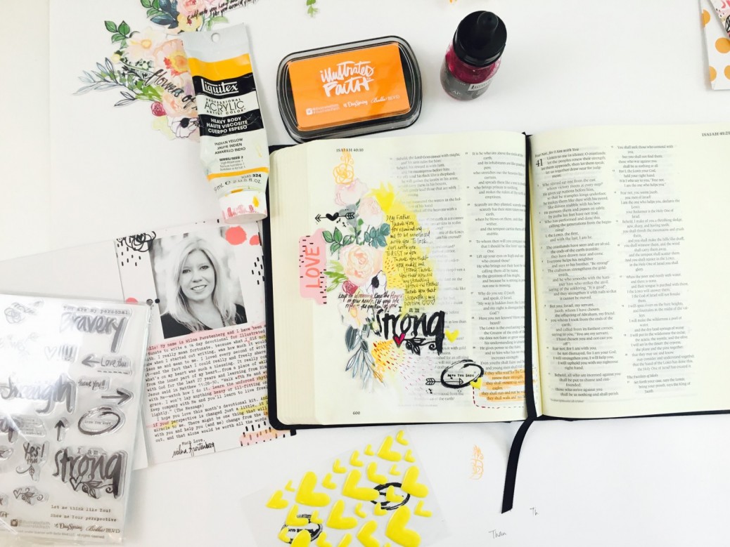 We are so excited to have Wilna Furstenberg as our guest artist this month! Not only did she write an amazing devotional, design wonderful products for the kit but she also is sharing some inspiring videos of her process for bible journaling. Wilna has always inspired me to want to create, and I know watching this will inspire you to get into the word and worship in color as you bible journal!